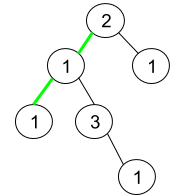 输入:root = [2,1,1,1,3,null,null,null,null,null,1]